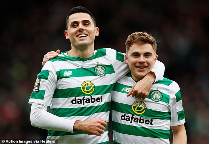 But it was Celtic who made the breakthrough 75 seconds into the six minutes of added time. Forrest collected a short pass on the right from Callum McGregor then gave Max Lowe the slip with the dip of a shoulder before smashing an unstoppable drive past Joe Lewis.