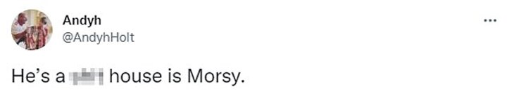 'He's a s**t house is Morsy,' Holt tweeted after the match, but he has since looked to apologise for the offence caused.