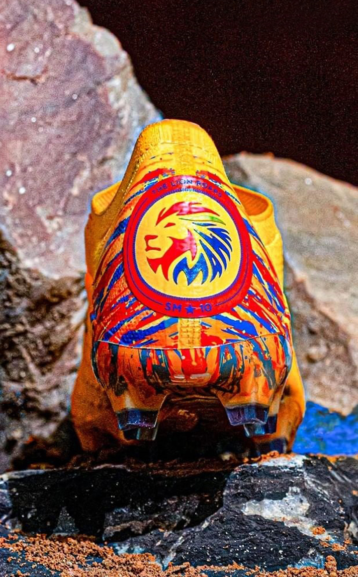 There is also several illustrations of Mane celebrating on the soul of the shoe along with the caption: "The Lion Roars".