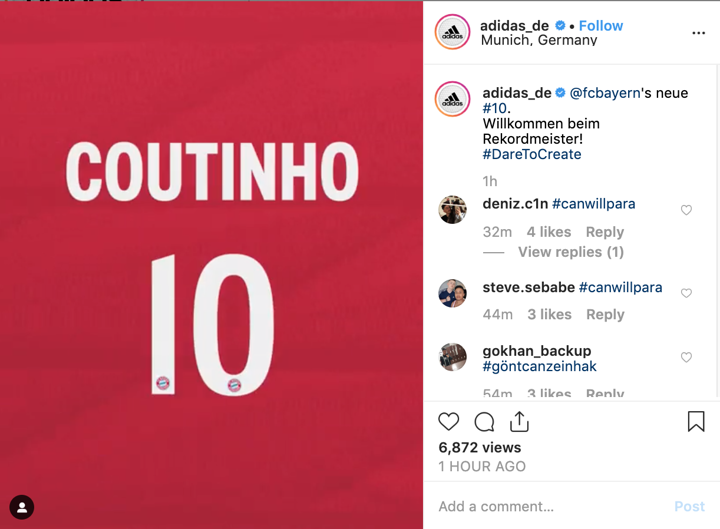 Adidas Germany, the official sponsor of Bayern Munich, writes on Instagram 'Bayern's new No.10'.