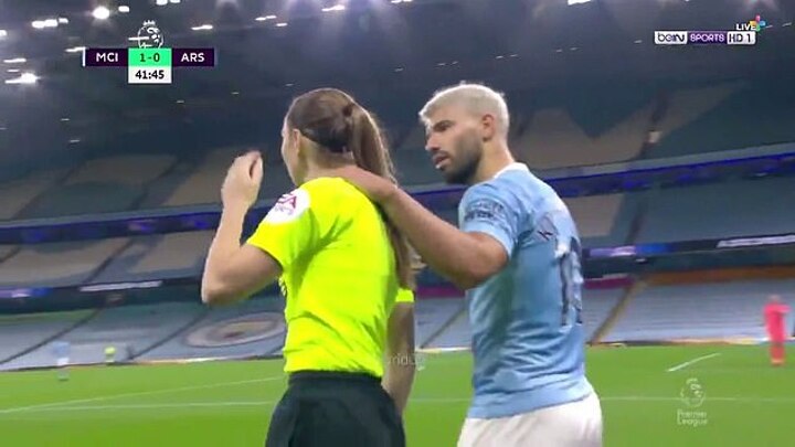 The Argentine was arguing a throw-in decision given to Arsenal when he put his hand on her shoulder.