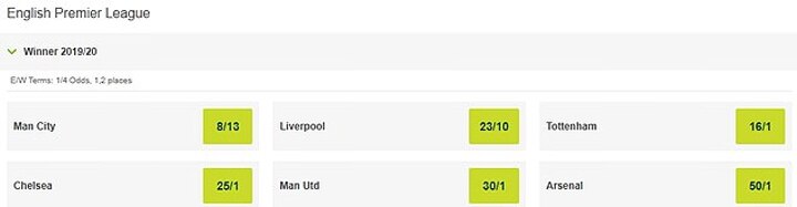 Paddy Power have Arsenal at that price, making them sixth favourites to win the league behind Manchester City (8/13), Liverpool (23/10), Tottenham (16/1), Chelsea (25/1) and Manchester United (30/1).