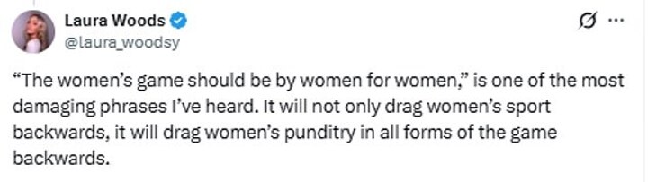 '"The women's game should be by women for women," is one of the most damaging phrases I've heard. It will not only drag women's sport backwards, it will drag women's punditry in all forms of the game backwards.