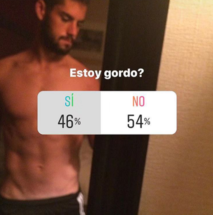 On Sunday Isco took to Instagram to ask fans to vote on his figure. Posing topless the 26-year-old asked: 'Am I fat?'