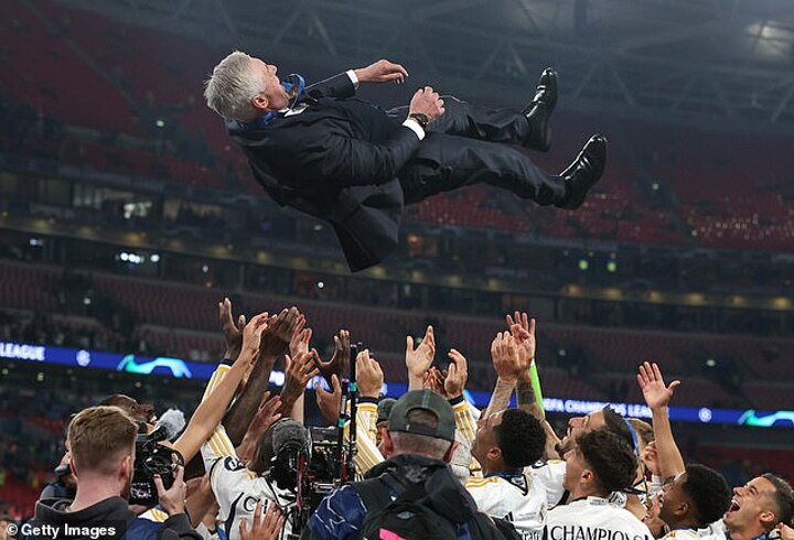 The jubilant players of the 2024 success threw Ancelotti up into the night sky and caught him after the match, in wild celebrations after clinching Real Madrid's 15th European Cup or Champions League in their illustrious history.