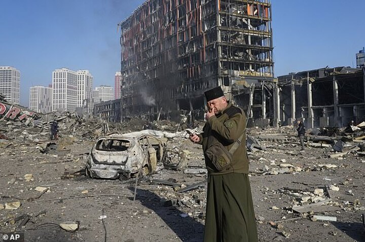 'You feel every bomb that touches the ground because the house is shaking,' says this teary 45-year-old, smacking the table for emphasis. 'This is what the war is now. It's in that stage where the Russians surround the city and are just bombing. They don't stop. It's relentless.