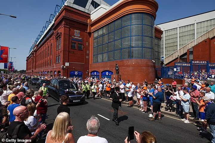 Hundreds of fans filled the streets in and around Ibrox to say their final farewells, before he was laid to rest.