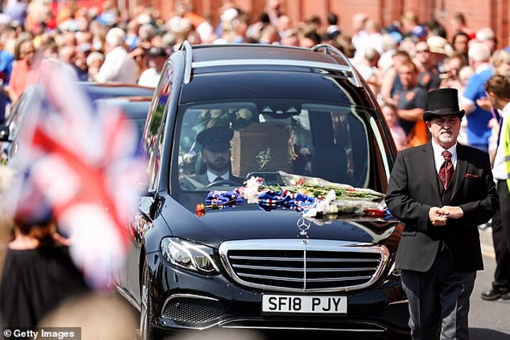 The funeral procession made its way through the city before arriving at a service at Wellington Church in Glasgow on Monday afternoon.