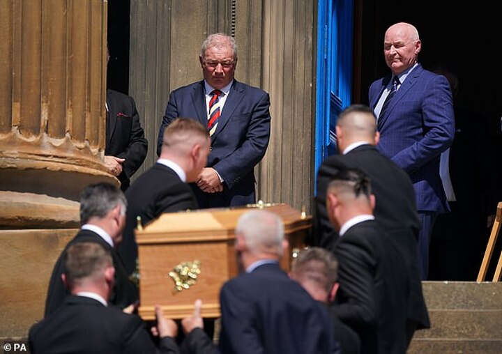 Manchester United's legendary manager Sir Alex Ferguson and Ally McCoist lead a host of Rangers icons past and present to pay their final respects to one of the club's greatest goalkeepers Andy Goram at a funeral service in Glasgow.