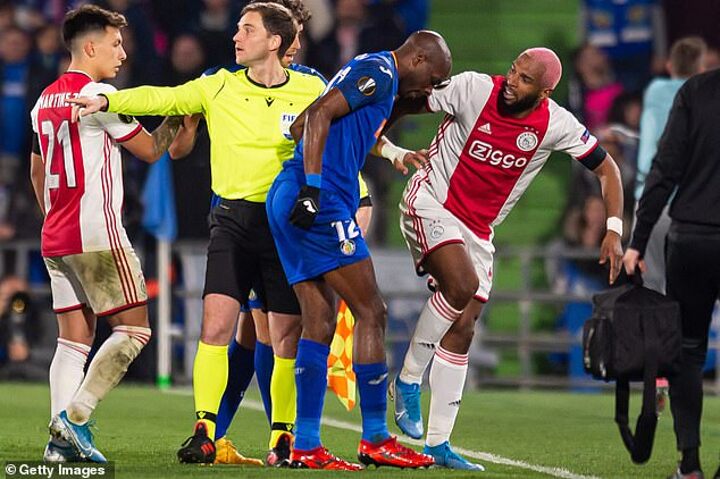 Ryan Babel was left furious by Getafe's Allan Nyom when the defender threw himself to the floor after a challenge from the Ajax attacker.