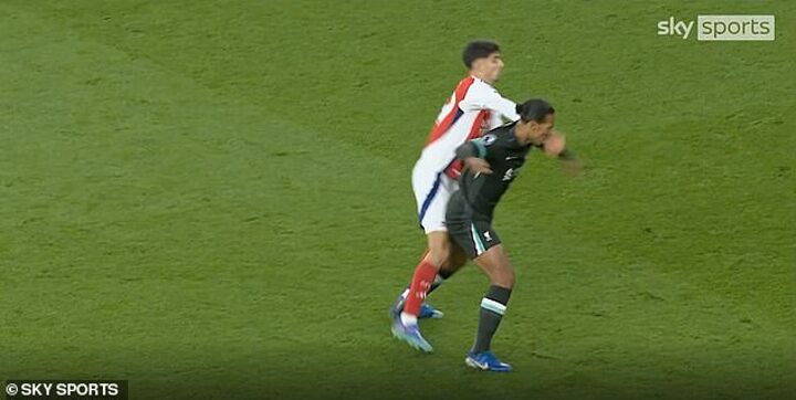 Bukayo Saka had earlier opened the scoring in the ninth minute. Mikel Merino and Mohamed Salah also found the net later in the match. But all of those goals came after Van Dijk was penalised for an off-the-ball foul on Kai Havertz.