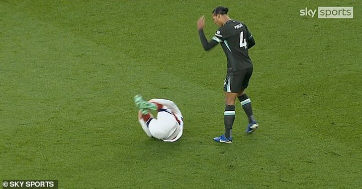 Referee Anthony Taylor awarded a free-kick but did not issue Van Dijk with a card.