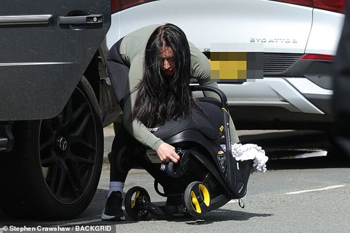 Kilner, 30, was joined by her newborn son - whose name is yet to be confirmed - as she visited a local boutique before returning to her car.