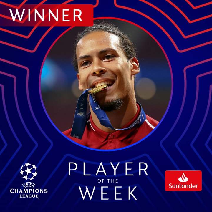 As is voted by fans on UEFA official website, the Dutch star is honored Champions League Player of the Week, beating fellows Salah, Alisson and Origi.