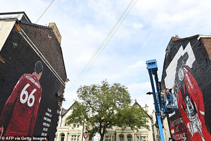 The mural is located across the road from the three-storey tall image of Liverpool right-back Alexander-Arnold that can be found on the corner of Sybil Street and Anfield Road.