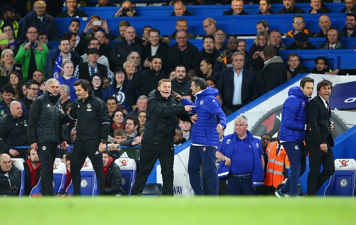 The pair had to be separated by the fourth official Mike Jones on the Stamford Bridge touchline during a particular flash point.