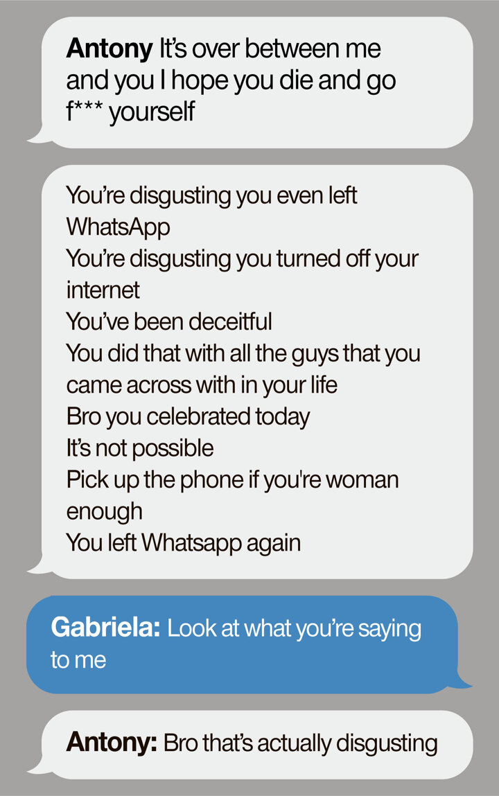 The texts go on to read that Antony, also 23, allegedly called Gabriela "deceitful" and urged her to pick up his phone calls.