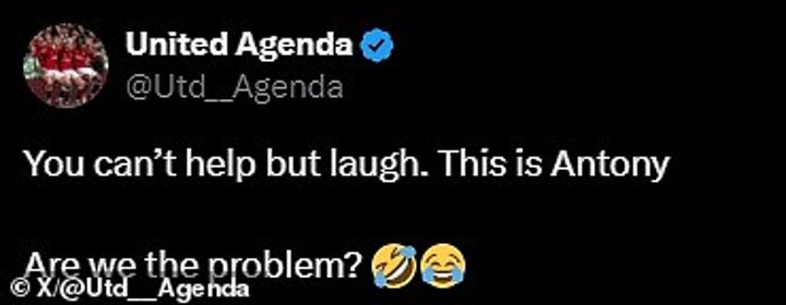 A second added: 'Antony scored again tonight. See what can happen when a player gets away from our reactive toxic fanbase'.