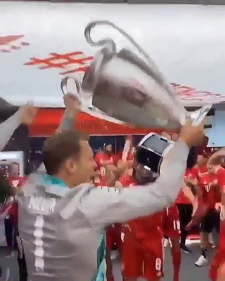 The French left-back also posted a video of Bayern players chanting club songs in the dressing room, with captain Manuel Neuer holding the Champions League aloft while jumping up and down.