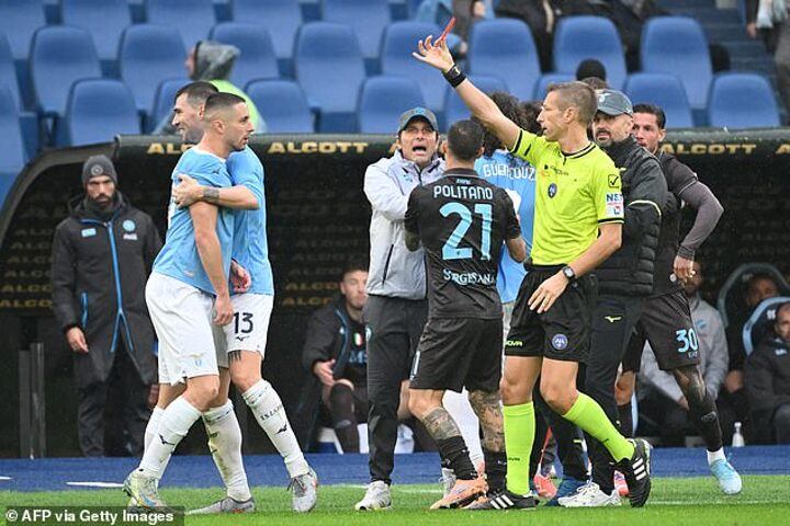 The 41-year-old is thought to have been accusing the referee of biased decisions in the match, and had to calmed by the fourth official to present escalation.