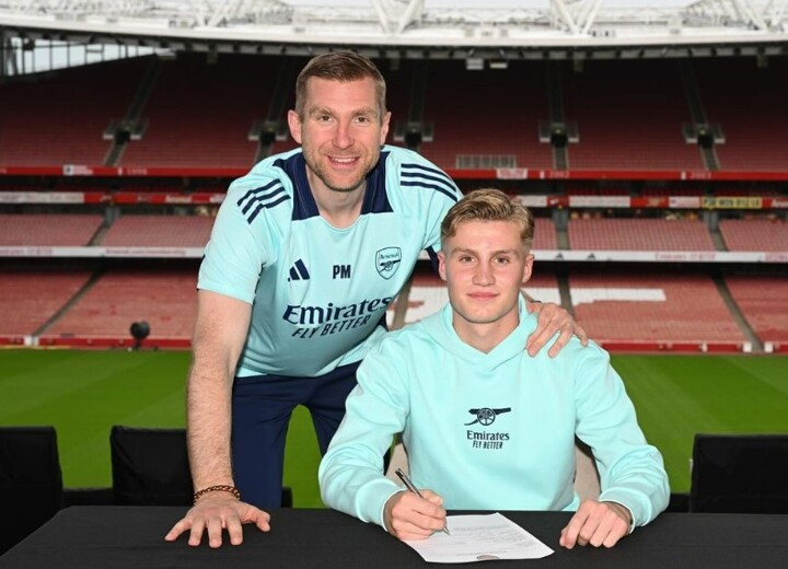 He shared the moment on Instagram, captioning a photo alongside Arsenal Academy manager Per Mertesacker: "Dream come true, delighted to sign for this amazing football club with such great history, would like to thank everyone who’s supported me throughout the years."