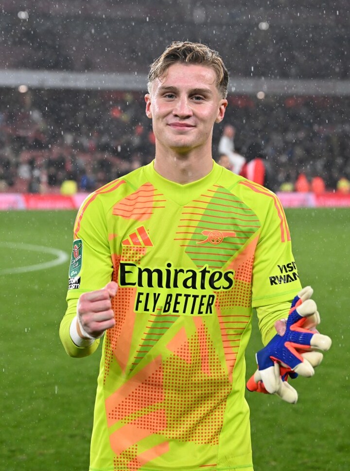 The teenager became the youngest player to start a competitive game in the club's history, when he appeared between the sticks at the Emirates in the 5-1 defeat of Bolton in the EFL Cup.