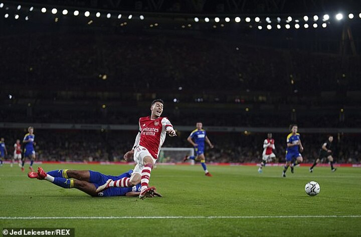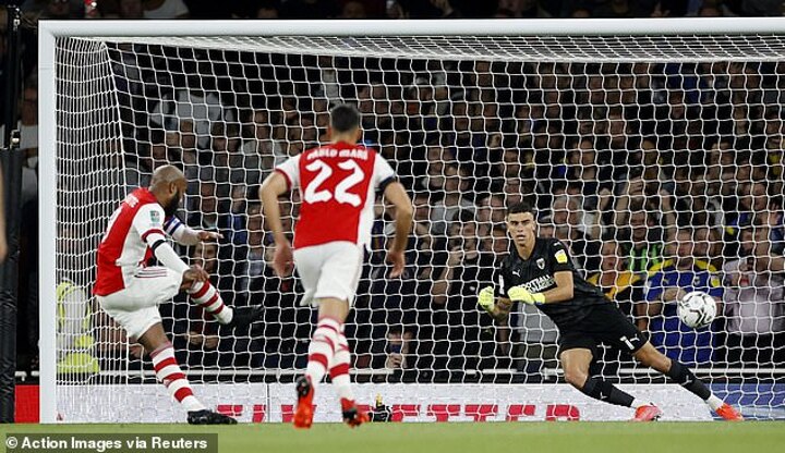 Gabriel Martinelli was brought down inside 10 minutes at the Emirates, leaving captain for the night Lacazette the chance to put the home side ahead from the spot.