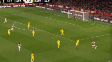 GOOALLLL!!! Aubameyang picked up the ball out wide before crossing the ball into the box, Volkov gets a foot to it... and puts it into his own net! It's a horrible start for BATE who have already allowed Arsenal to pull level in the tie! Surely the visiting fans will be having flashes of the previous 6-0 loss at the Emirates. Arsenal 1-0 BATE.
