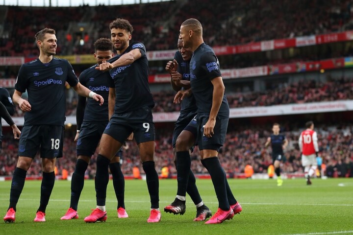 Everton stunned Emirates Stadium with a first-minute opener from Dominic Calvert-Lewin and also scored through Richarlison in stoppage time at the end of the first half.
