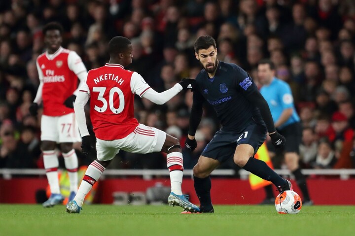 Pickford invites pressure on the Everton goal with a dangerous short pass to Sigurdsson. Arsenal quickly intercept and the ball breaks for Nketiah, whose curling effort crashes against the woodwork.