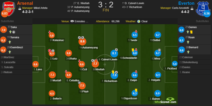 The visitors lead inside the opening 60 seconds as Arsenal fail to deal with Sigurdsson's free-kick, and Calvert-Lewin beats Leno with a terrific overhead kick.