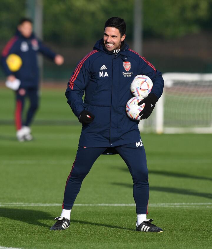 The Gunners boss was all smiles as he took an intense training session at London Colney on Thursday morning.