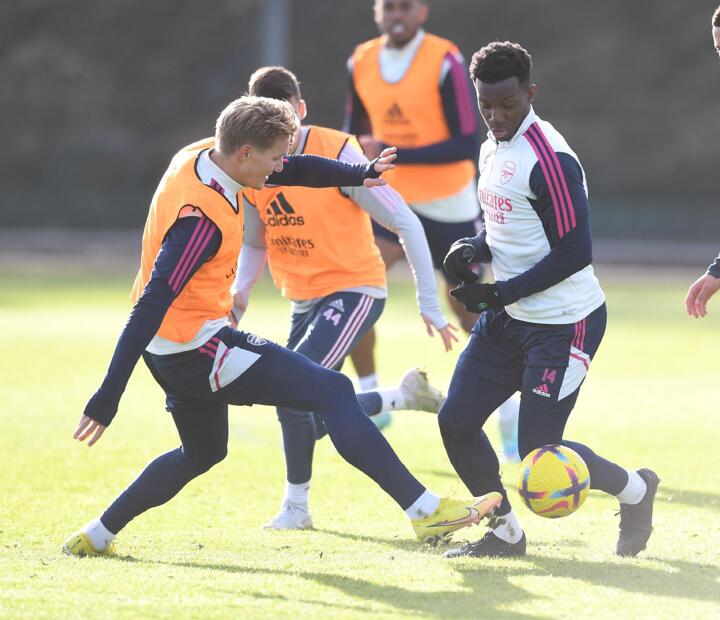 And Eddie Nketiah, Fabio Vieira and Gabriel Magalhaes were also put through their paces as Arteta occasionally joined in from the sides.