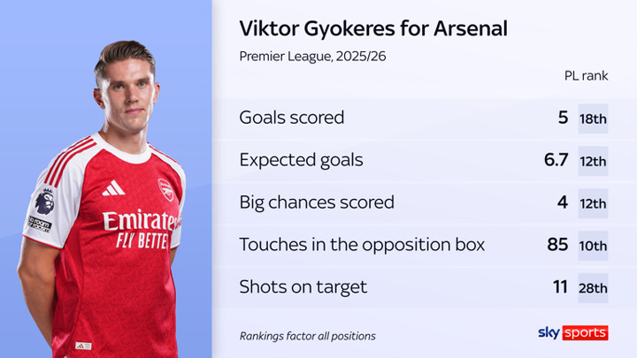 Marquee summer signing Gyokeres - who completed a £63.5m move from Sporting after scoring 97 goals in just 102 appearances for the Portuguese side - has struggled since arriving in north London.
