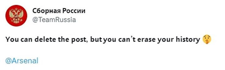 Yet one Russian user leapt to the support of Arshavin and commented: 'You can delete the post, but you can't erase your history'.
