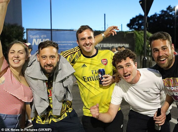 After the match, Arsenal supporters congregated on the streets of north London to celebrate the win and were caught singing and chanting very close to each other despite pleas from the Government to stay at least one metre apart.