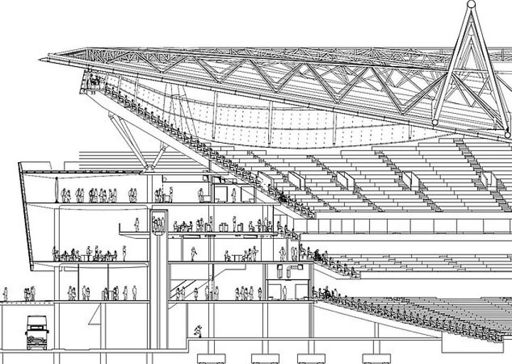 Around 4,000 seats were added to the stadium, taking the capacity up to 83,186, while a 360-degree screen, retractable roof and retractable pitch to host non-football events.