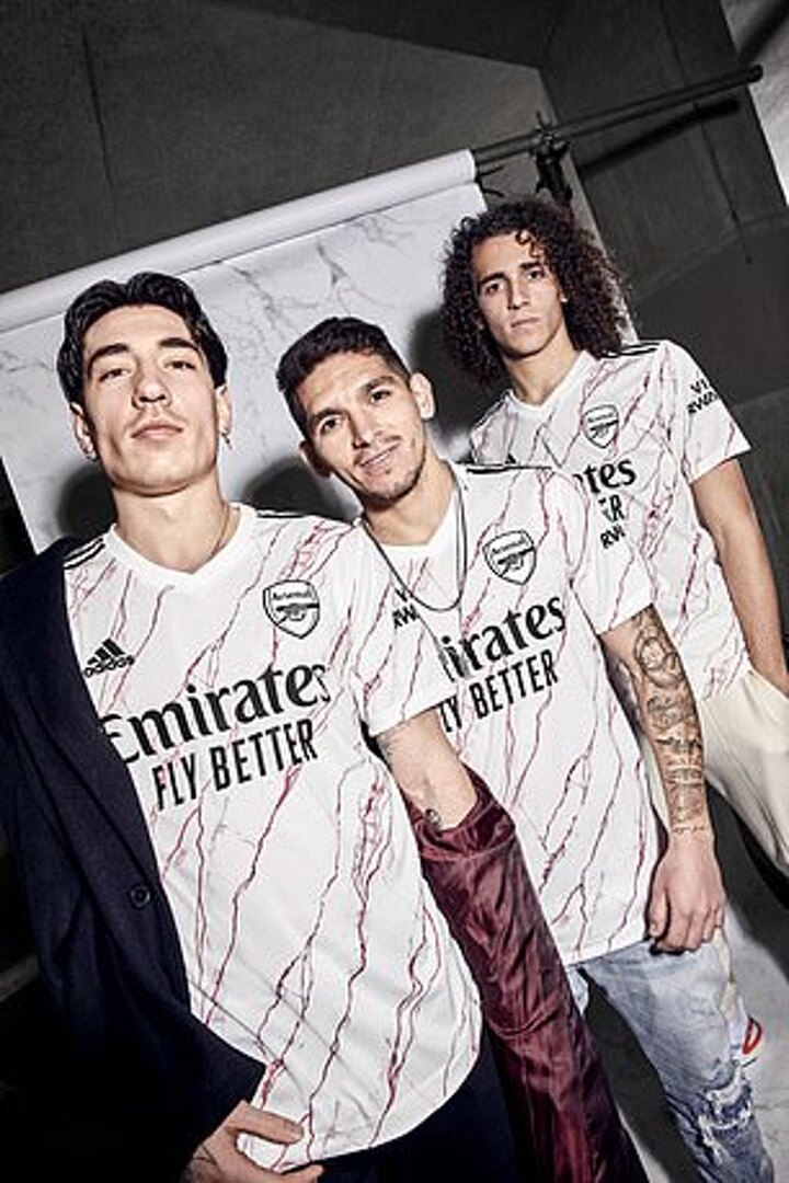 The Gunners will be wearing a white/off-white strip in away games with the design paying homage to their iconic East Stand at Highbury - where a statue of legendary manager Herbert Chapman was erected.