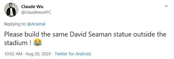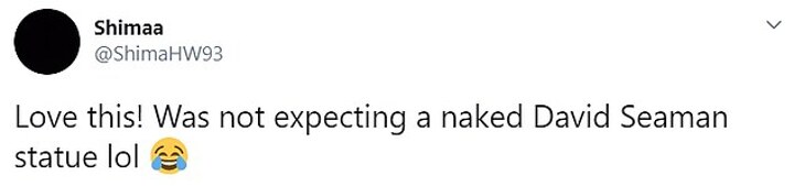 'Please build the same David Seaman statue outside the stadium!,' wrote one fan. 'Love this! Was not expecting a naked David Seaman statue lol,' another tweeted.