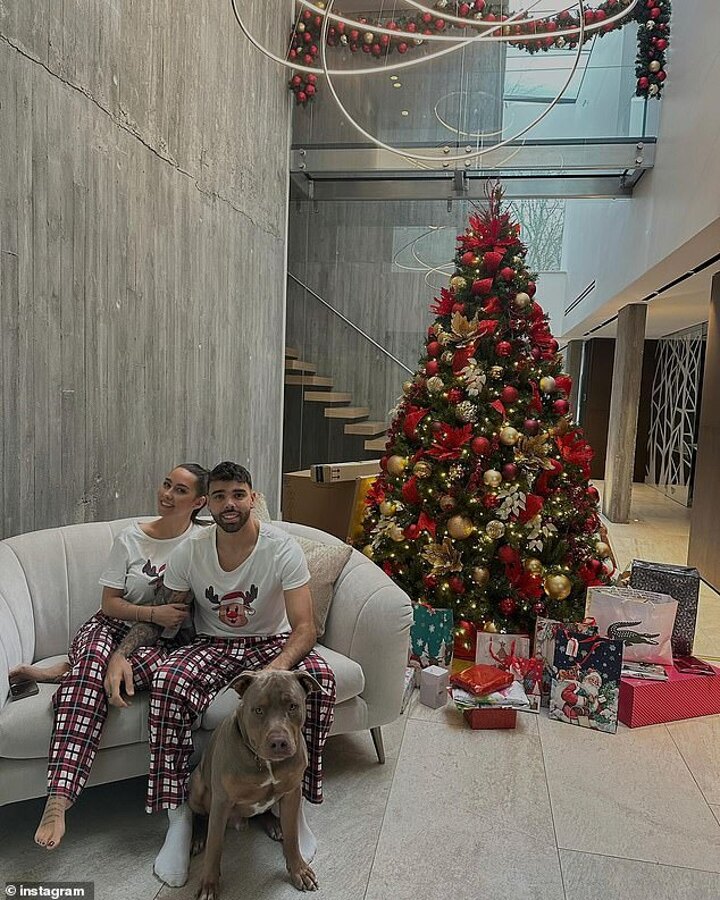 The couple's home is protected by an XL Bully dog after Raya reportedly received an exemption certificate after a ban came into force in February earlier this year.
