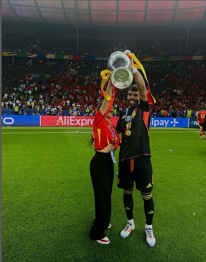 Raya and Trouboul celebrated on the pitch after Spain were ultimately crowned European Championships, beating England 2-1 in the final.