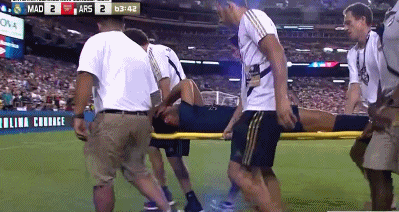 The Spanish winger had just fired Real level with a well-taken goal before injuring himself tracking back to challenge Pierre-Emerick Aubameyang - his foot catching in the turf as he attempted to make a sharp turn.