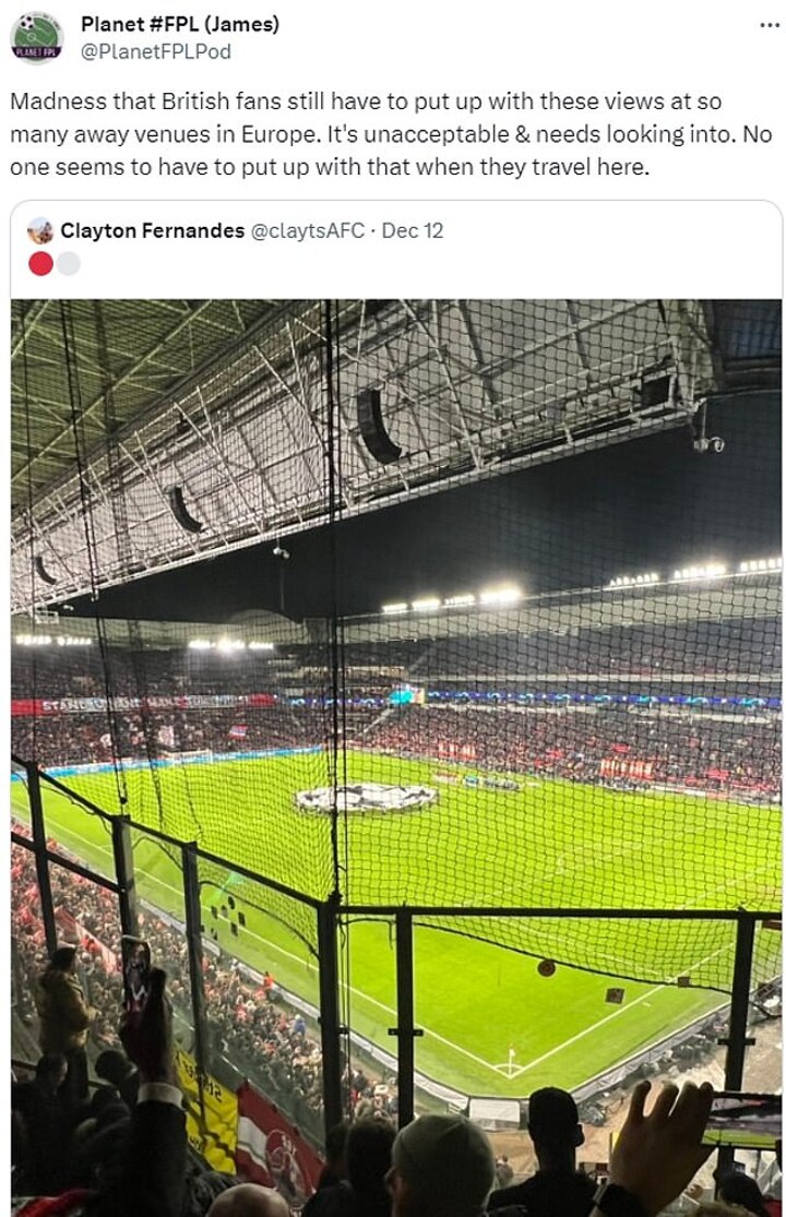 Football fans on social media were quick to hit out at the treatment of the Villa faithful, which comes after Arsenal supporters were forced to watch their clash against PSV in Eindhoven through netting and window-like panels.