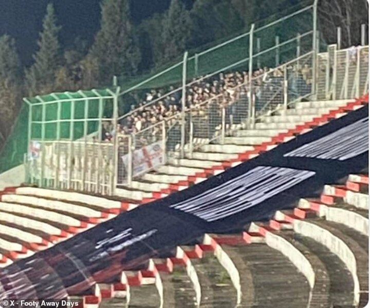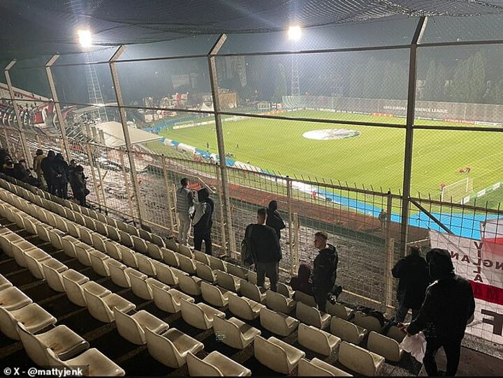 Although they were not near home fans, Villa's contingent at the Bijeli Brijeg Stadium were surrounded at the front, side and back with a metal structure, while they were further penned in by a netting above.