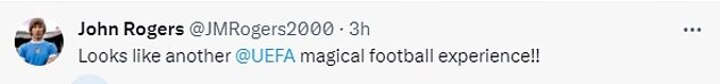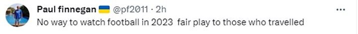 Other users hit out at European football's governing body as they fumed: 'Looks like another @UEFA magical football experience', with another adding: 'No way to watch football in 2023. Fair play to those who travelled.'