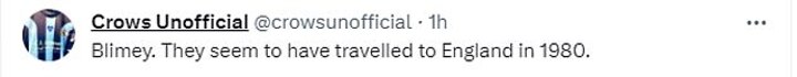 Another supporter added: 'Blimey. They seem to have travelled to England in 1980.'