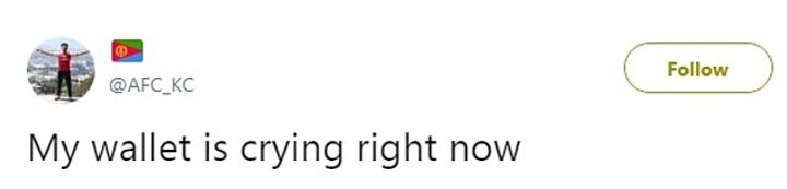 'Adidas have pulled off something special,' another tweeted as a fellow fan simply said 'my wallet is crying'.