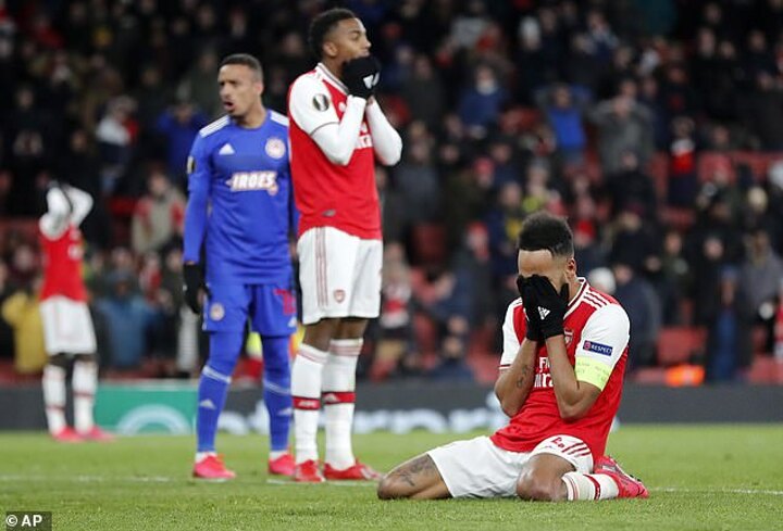 Aubameyang told BT Sport: 'I think everybody is happy tonight and definitely I had this (late miss against Olympiakos last season) in my head.