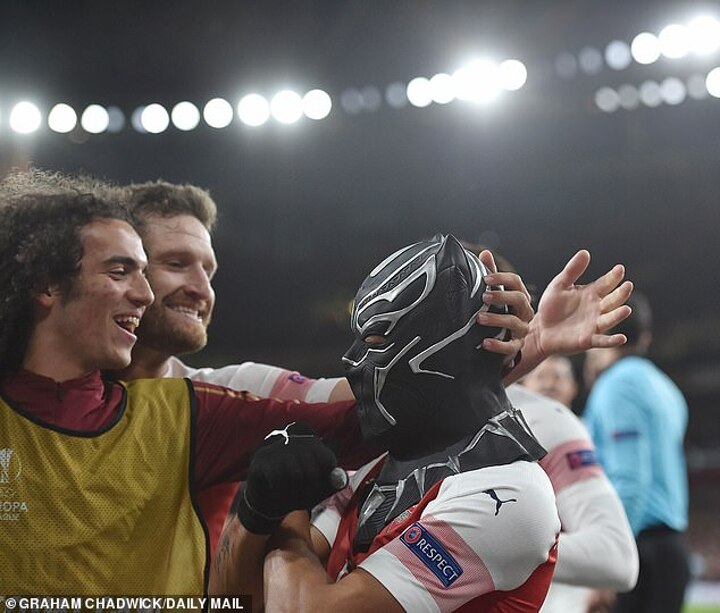 The striker was famous for his masked celebrations at Borussia Dortmund, wearing Spider-Man and Batman masks after scoring, but Thursday was the first time he performed one in an Arsenal shirt.