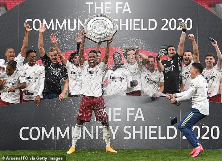 The Arsenal captain was on hand to lift the trophy just a few weeks after getting his hands on the FA Cup trophy at the same venue.
